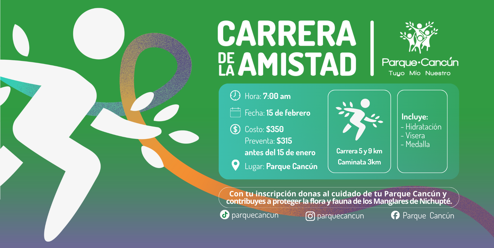 Tu inscripción se transforma en la protección de la flora y fauna de los Manglares de Nichupté y en el cuidado de este espacio verde y gratuito para Cancún.